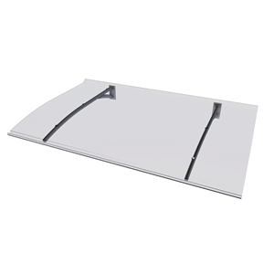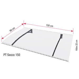 gop Dørbaldakin Secco PT er en moderne baldakin i stilrent design, der forbedrer udseendet af dit hus. Konstruktionen er af høj kvalitet med stabile antracitgrå (RAL 7016) konsoller af rustbeskyttet pulverlakeret aluminium og en klar tagplade af 3 mm polykarbonat. Taget fås i to bredder: 150 cm og 200 cm.